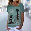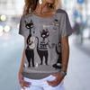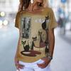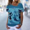 Винтажная футболка с котенком, женская футболка с рисунком кота в стиле аниме, блузка с v-образным вырезом, летняя одежда большого размера с коротким рукавом, женская одежда в стиле Харадзюку, повседневная уличная одежда