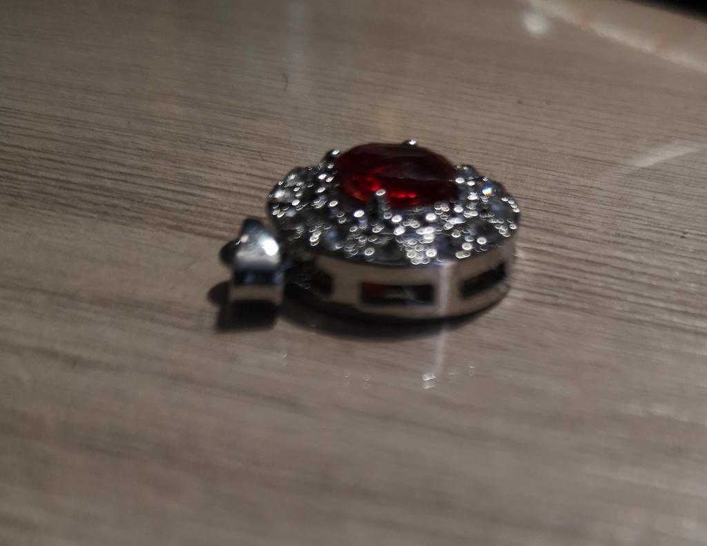 На кольце камень со сколом. На кулоне приклеен неровно, одна часть выступает.