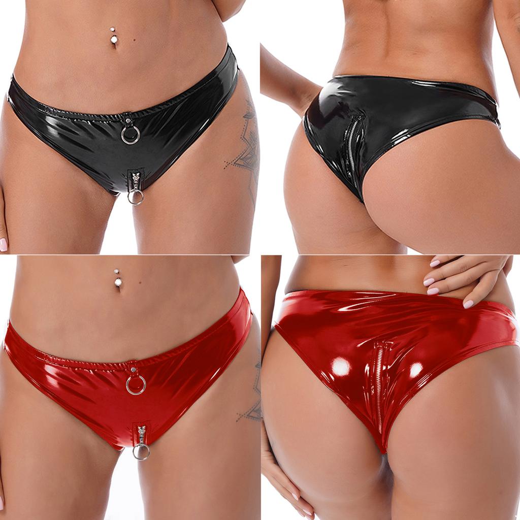 Сексуальное женское белье, трусики из лакированной кожи для женщин, трусы с уплотнительным кольцом на молнии и низкой талией, сексуальное женское экзотическое нижнее белье, трусы