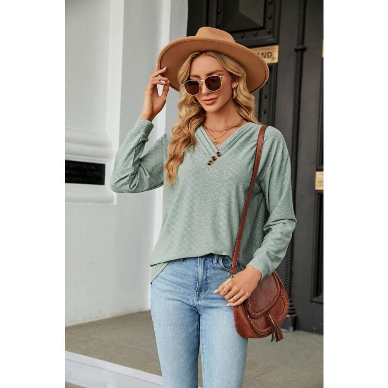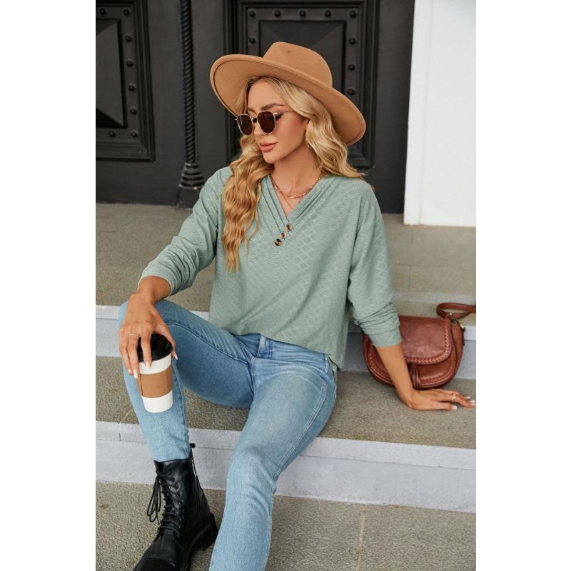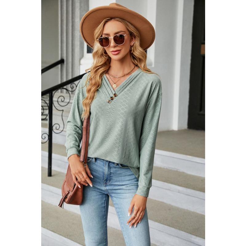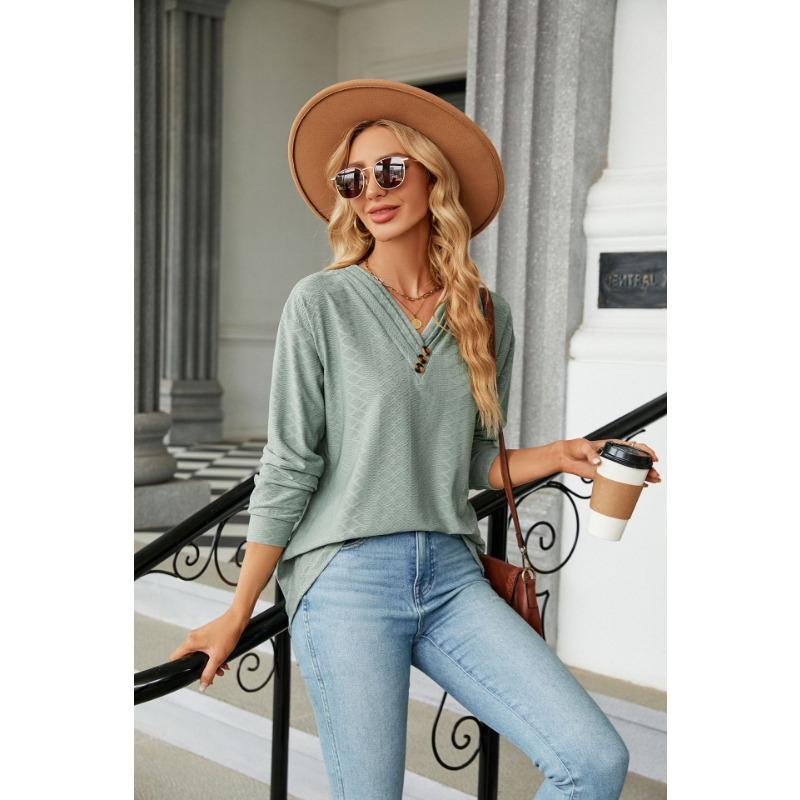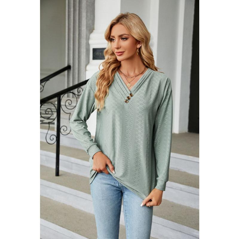 Весенне-осенняя женская блузка, однотонный свободный топ с длинными рукавами на пуговицах и v-образным вырезом