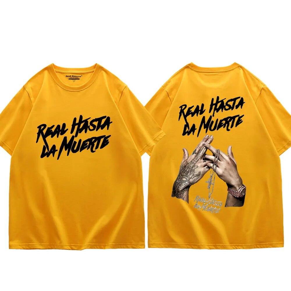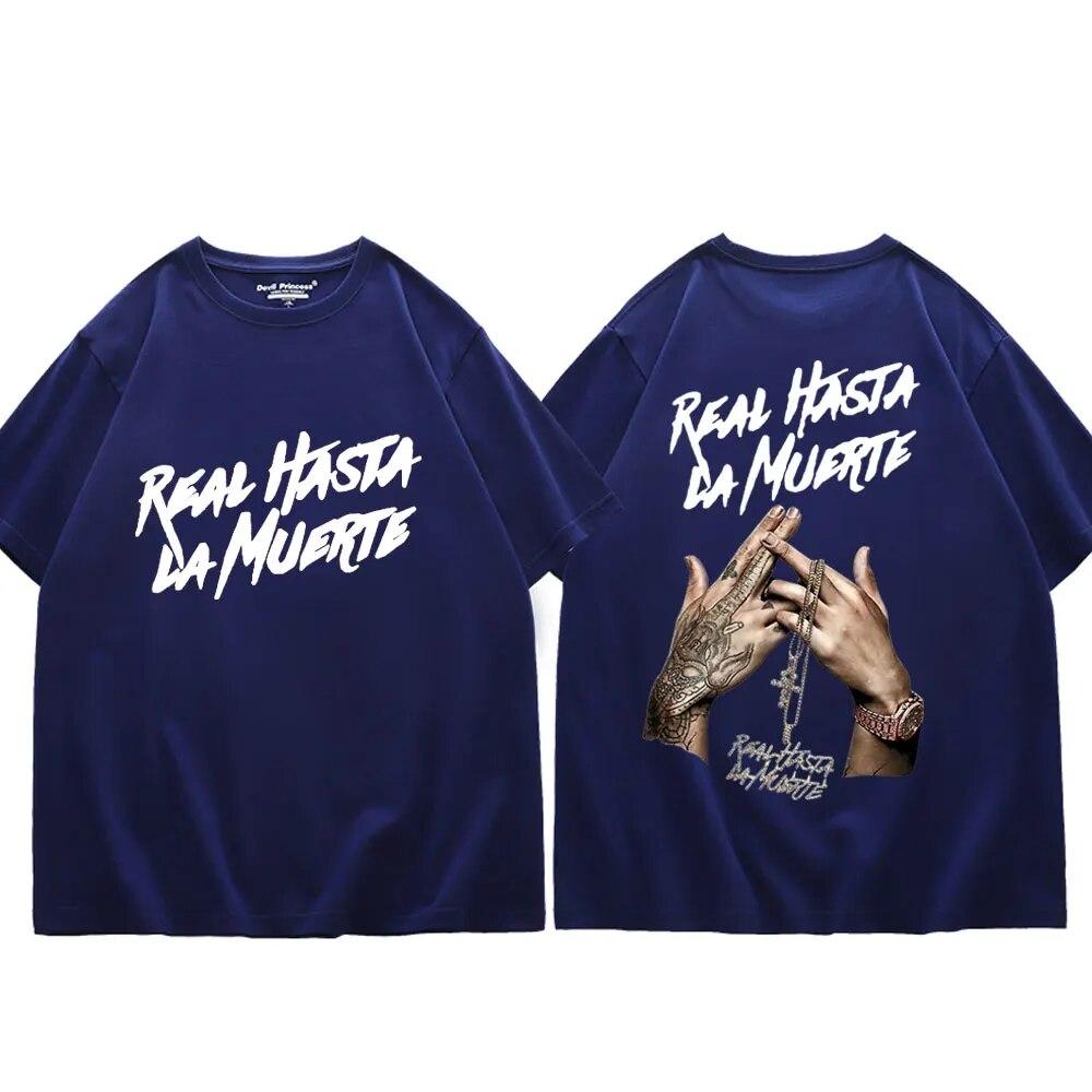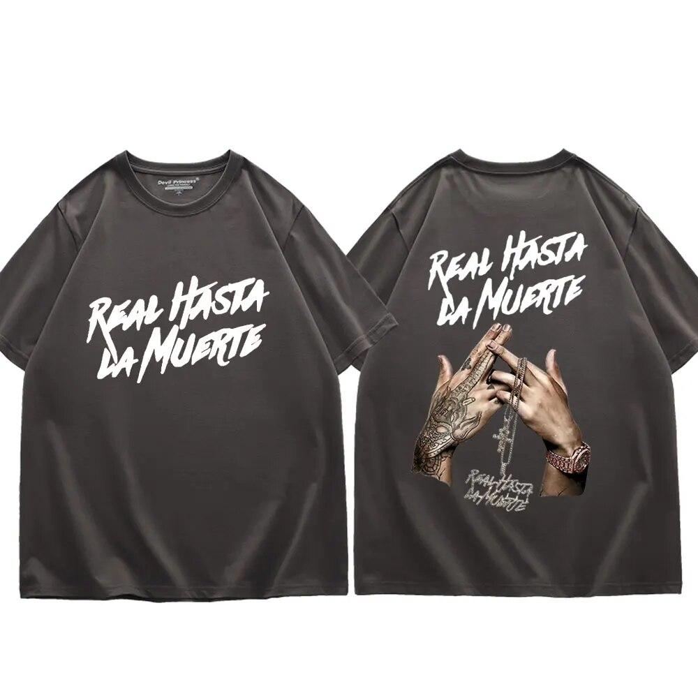 Рэппер Ануэль Аа Музыкальный альбом Real Hasta La Muerte Футболка с принтом Модная тенденция Футболка в стиле хип-хоп Высококачественные хлопковые футболки унисекс