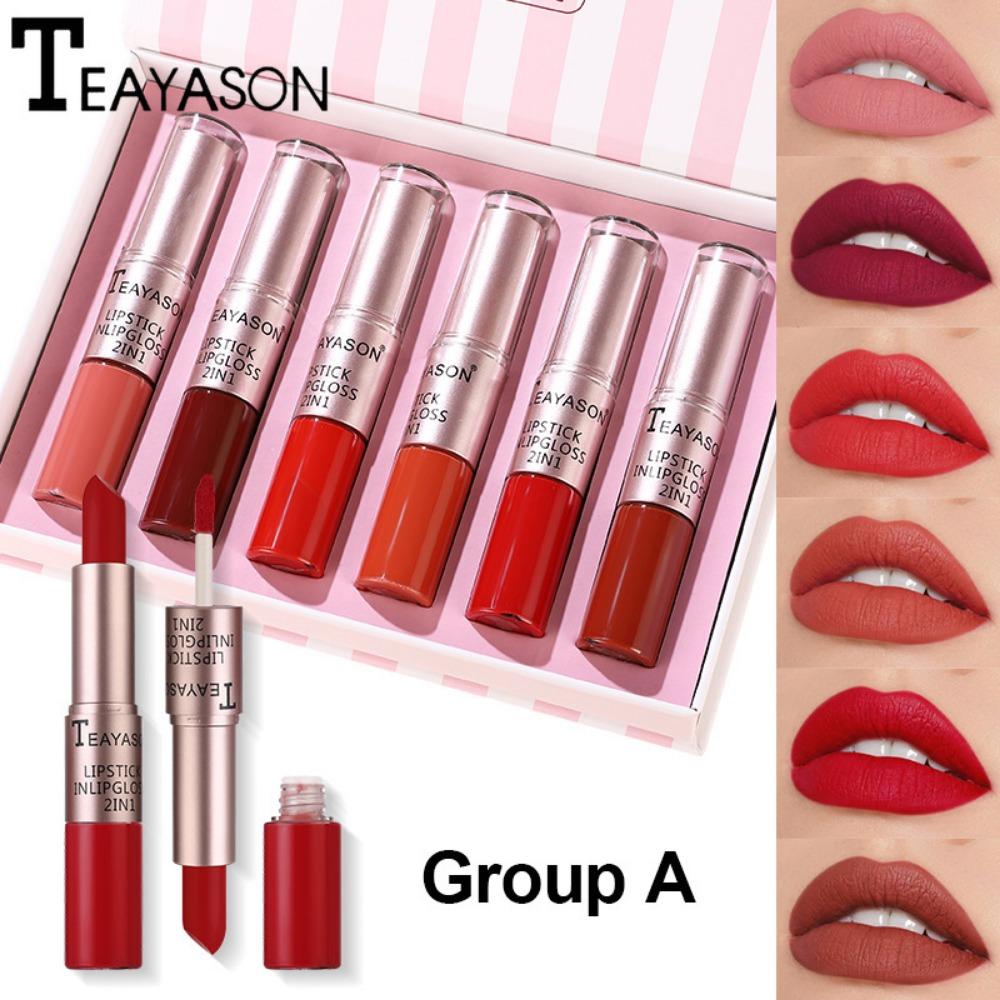 Матовый туманный блеск для губ с двойной головкой без липкой чашки, паста «два в одном», набор из 6 коробок, губная помада, набор женской глазури для губ