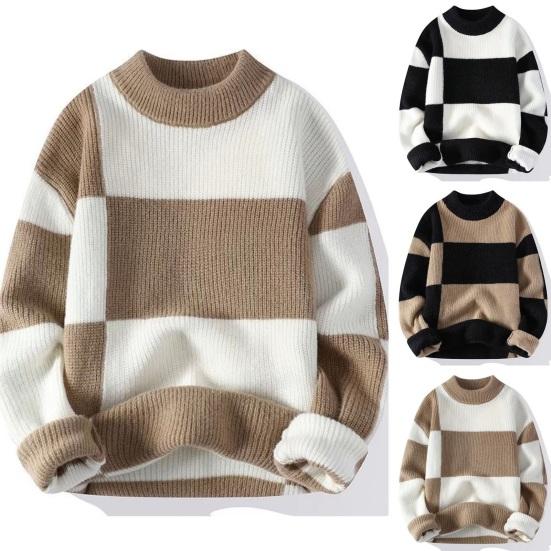 Свитер контрастного цвета с круглым вырезом и длинными рукавами, утолщенные теплые вязаные топы, высокоэластичный трикотаж — купить товар онлайн с бесплатной доставкой по всему миру!
