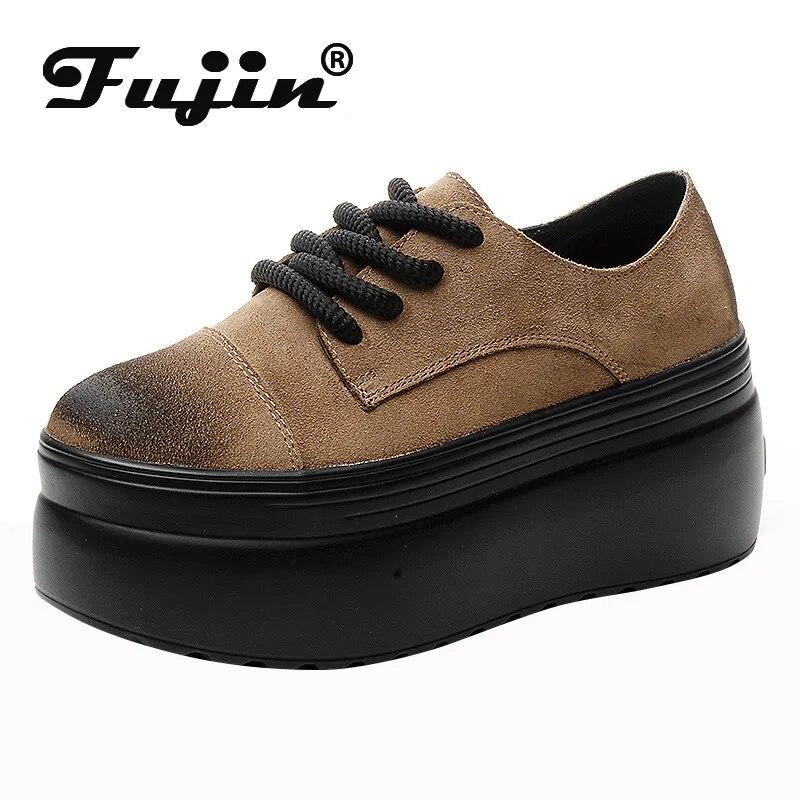 Fujin/8 см замшевые ботинки на платформе из натуральной кожи, женские весенние осенние ботинки на танкетке, снимающие давление, модные ботильоны с высоким берцем — купить товар онлайн с бесплатной доставкой по всему миру!