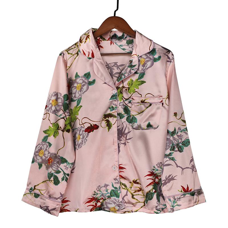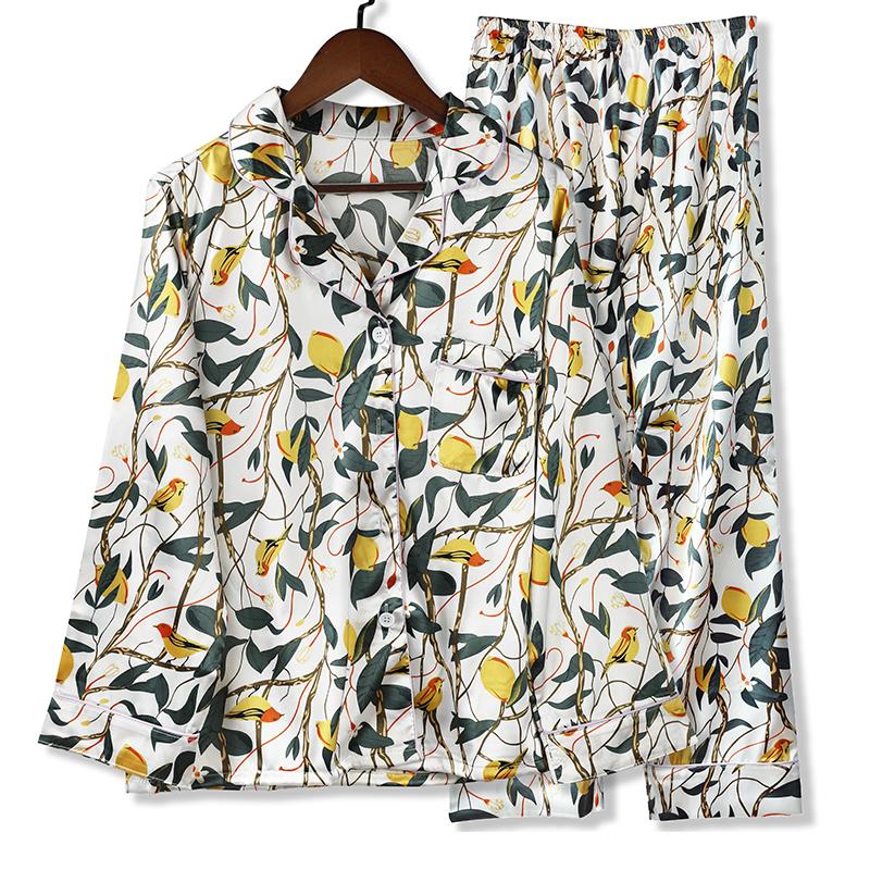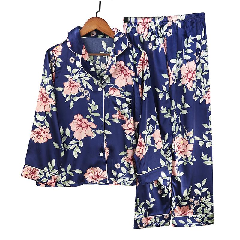 Пижамный комплект с цветочным принтом, женская корейская домашняя одежда, комплект с длинными рукавами, атласные длинные брюки, повседневная шикарная одежда для сна, тренд