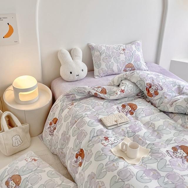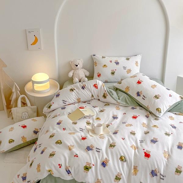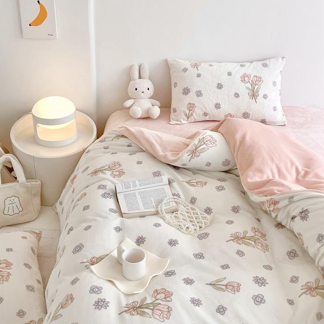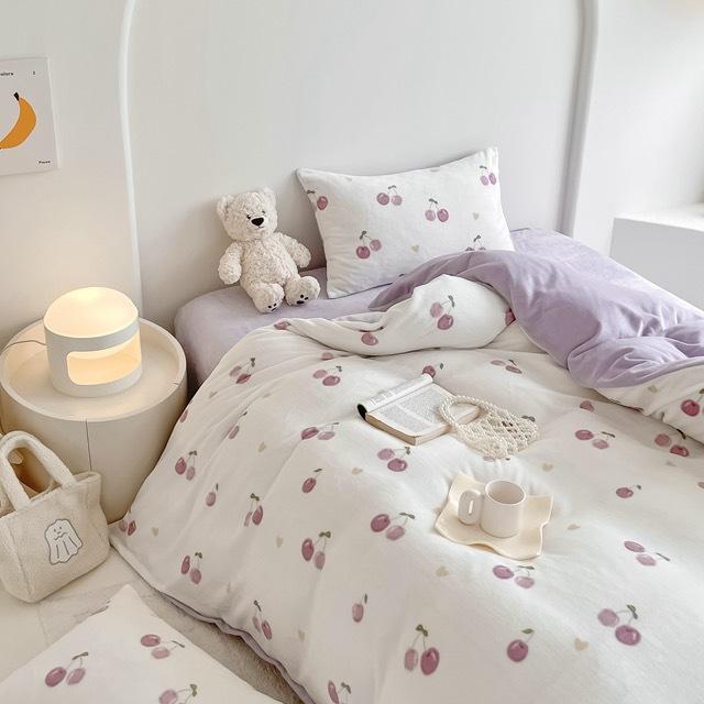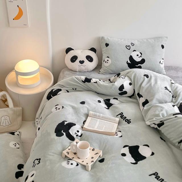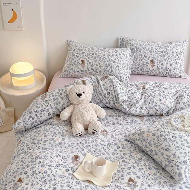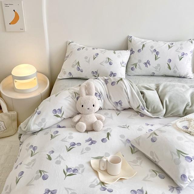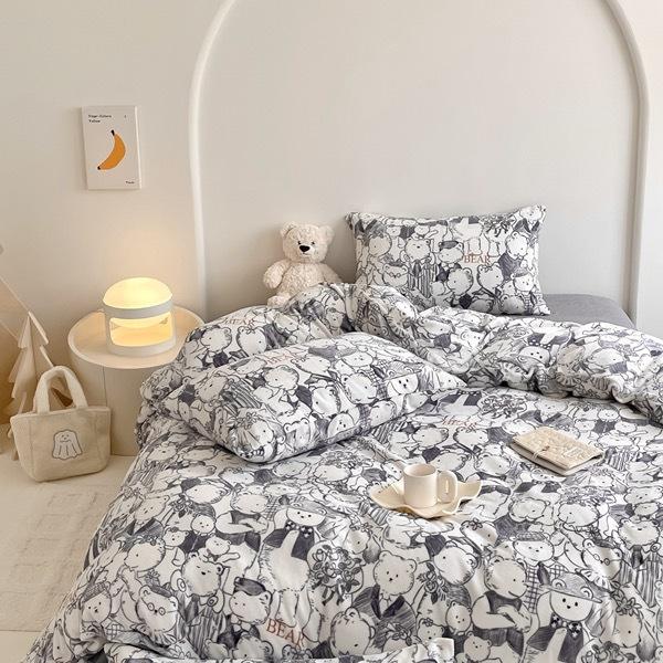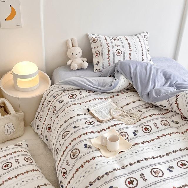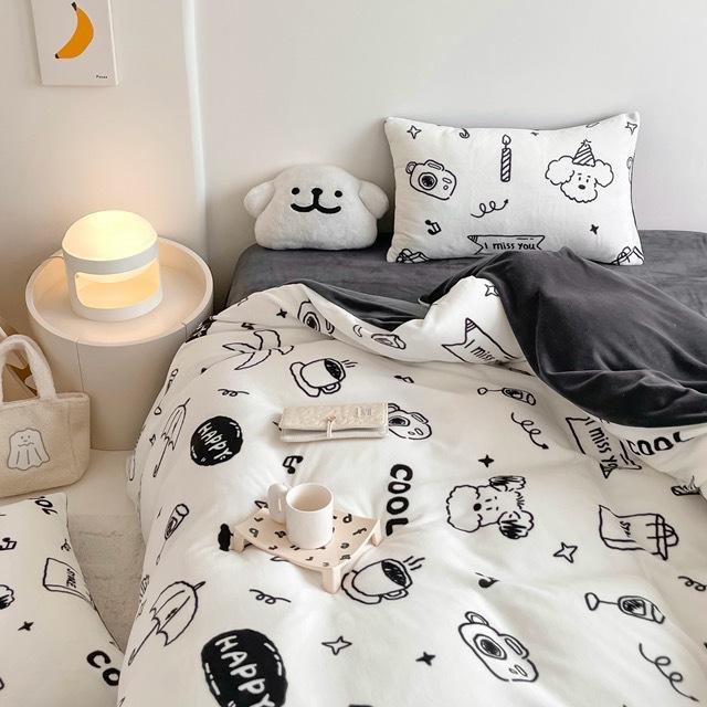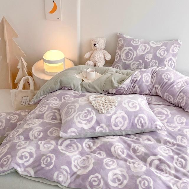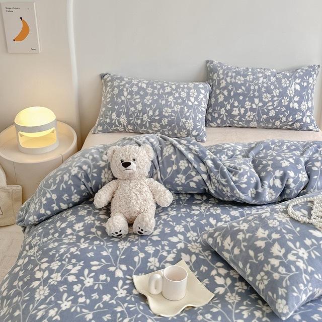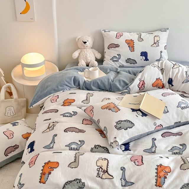 Зимний комплект из четырех предметов из молочного бархата с принтом, комплект из утолщенного и теплого молочного бархата, двухсторонняя бархатная простыня и пододеяльник.