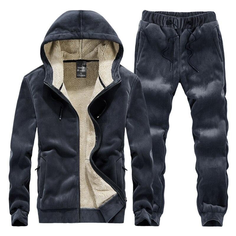 Кашемировый костюм, зимний мужской спортивный костюм, флисовая теплая толстовка, брюки, одежда, зимний повседневный мужской комплект, бархатный комплект больших размеров, комплект из 2 предметов