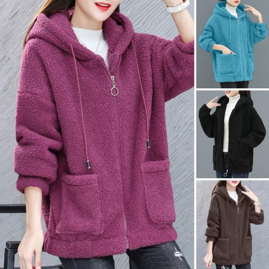 Женское осенне-зимнее пальто с капюшоном и шнурком, с длинными рукавами и карманами на молнии, толстый плюшевый кардиган, верхняя одежда, уличная одежда — купить товар онлайн с бесплатной доставкой по всему миру!