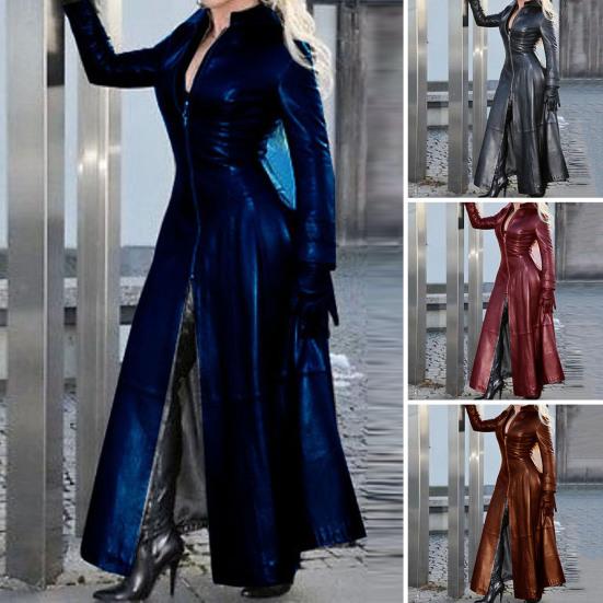Женская куртка из искусственной кожи на молнии, облегающий стильный элегантный плащ с воротником-стойкой на осень-зиму — купить товар онлайн с бесплатной доставкой по всему миру!