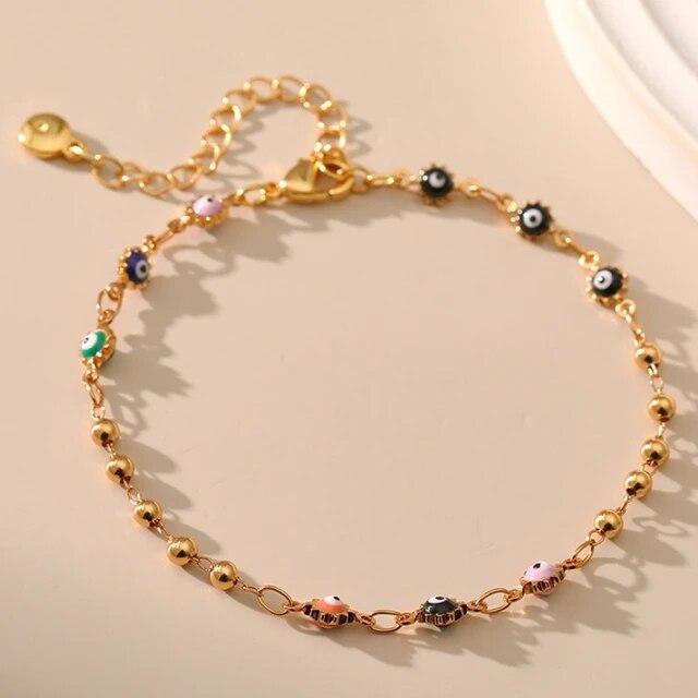 ANENJERY Каплевидная глазурь, разноцветные бусины в виде глаз, браслет с кристаллами для женщин, винтажная нишевая цепочка, вечерние украшения, подарки на день рождения