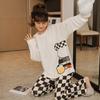 Пижамы с принтом, комплект из двух предметов, студенческий корейский, свободный, повседневный, с круглым вырезом, с длинными рукавами, весенне-осенний, сладкий, негабаритный, шикарный тренд