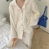 Хлопковые пижамы из пряжи, женские французские винтажные элегантные пижамы, простой кардиган с длинными рукавами, брюки, осенний стиль принцессы, домашняя одежда, домашний костюм из двух предметов