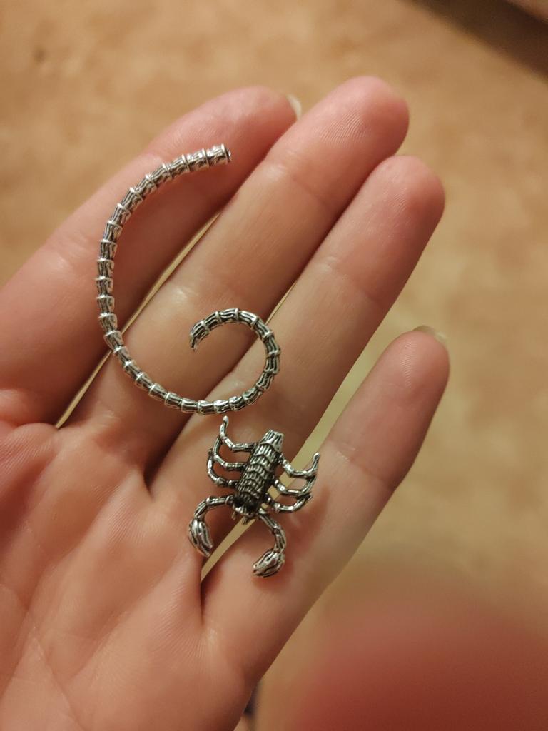 Ждала очень. Серьги клёвые, но металл слишком мягкий. Пока под форму уха подгоняла, хвост сломался у основания скорпиона. Нужно очень осторожно. Только из-за мягкости металла ставлю 2. Расстроилась