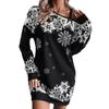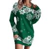 Женское осенне-зимнее платье с вырезом на одно плечо, свободное мини-платье с принтом снежинки, подходящее по цвету рождественскому стилю, с длинным рукавом длиной выше колена