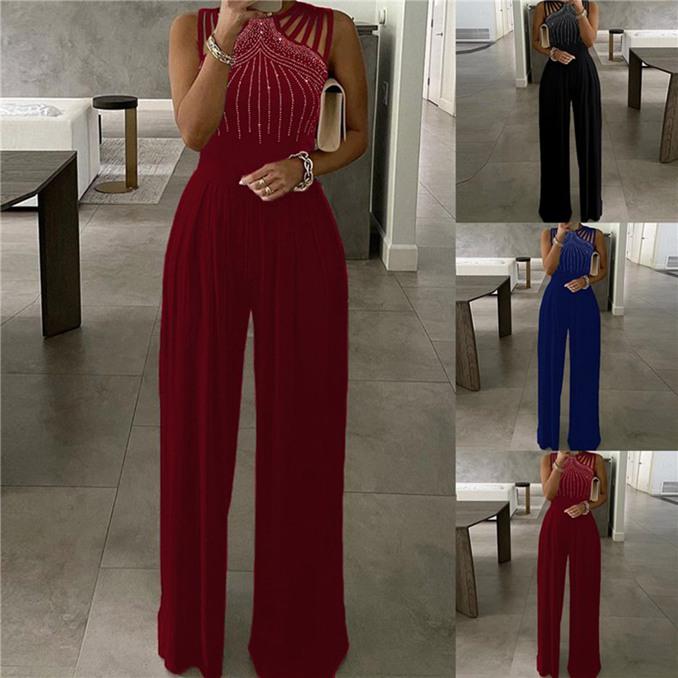 Новый сексуальный тонкий комбинезон без рукавов больших размеров, свободный полый плиссированный комбинезон с широкими штанинами — купить товар онлайн с бесплатной доставкой по всему миру!