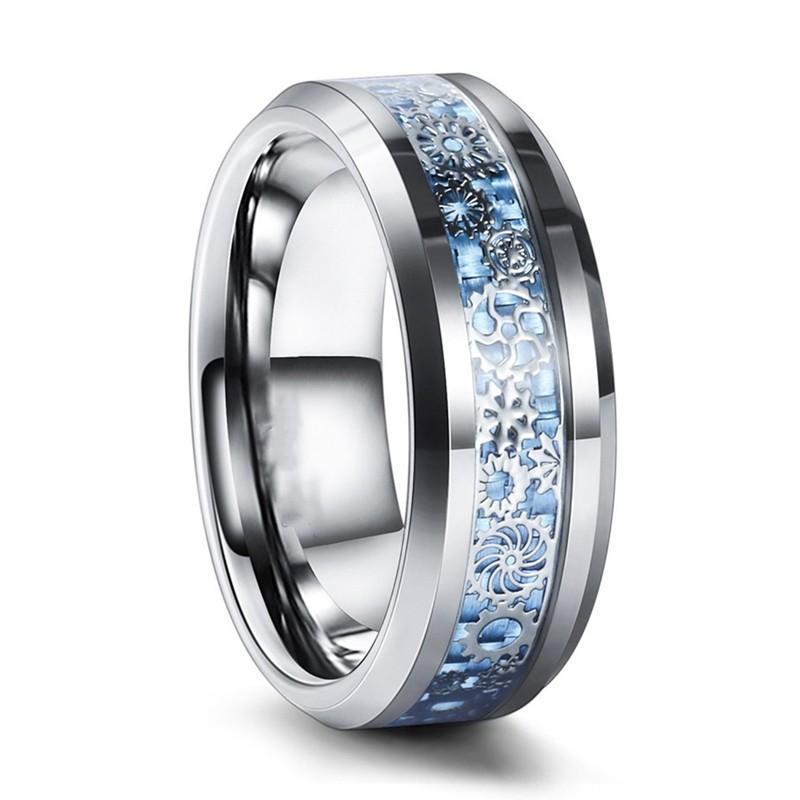 8 мм карбид вольфрама кольцо в стиле стимпанк инкрустация серебряная шестерня синий обручальное кольцо из углеродного волокна мужские ювелирные изделия