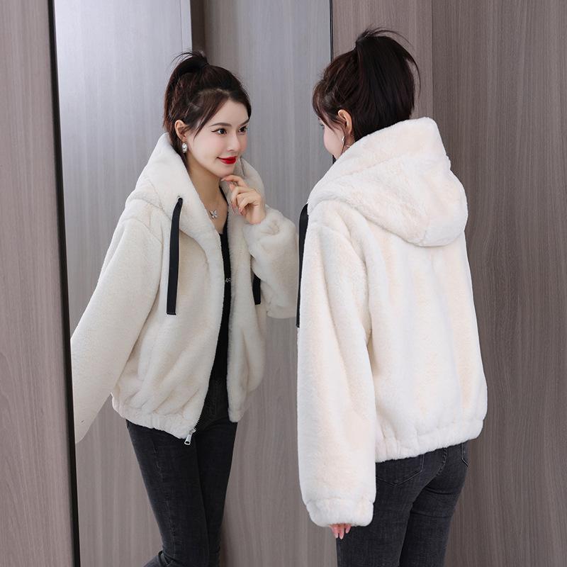 Плюшевая и толстая куртка с капюшоном из кроличьей шерсти для женщин, короткая зимняя новая свободная плюшевая куртка с длинными рукавами — купить товар онлайн с бесплатной доставкой до всему миру!