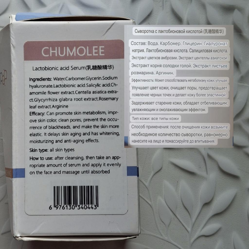 Лактобионовая сыворотка стала для меня настоящим открытием в мире ухода за кожей. Я решила попробовать этот продукт после того, как прочитала множество положительных отзывов о его свойствах и эффективности. Сыворотка обладает удобной упаковкой, которая располагается в небольшом флаконе, в комплекте идёт дозатор, что позволяет контролировать количество средства. Консистенция легкая и быстро впитывающаяся, что делает ее идеальной для ежедневного использования под крем или в качестве самостоятельного средства. В составе сыворотки содержится лактобионовая кислота, которая известна своими эксфолиирующими и увлажняющими свойствами. Также присутствуют глицерин, гиалуроновая кислота и экстракты растений, что придает продукту дополнительные полезные свойства. Все компоненты тщательно подобраны, и я была довольна тем, что там нет агрессивных химических добавок. После нескольких дней использования я заметила, что кожа стала более гладкой и ухоженной. Поры, действительно, выглядят менее выраженными, а текстура кожи улучшилась. Лактобионовая кислота способствует отшелушиванию мертвых клеток, и я почувствовала, что кожа стала более свежей. Использовать сыворотку очень легко. Я наносила ее на очищенное лицо, давая возможность полностью впитаться. Результат был заметен уже через неделю – меньше черных точек и более ровный тон лица! Чыворотка подходит для всех типов кожи, включая чувствительную. Я использую ее как в утреннем, так и в вечернем уходе, и не заметила никаких негативных реакций, таких как покраснения или зуд. Я однозначно говорю своё "да!" этому средству. Если вы хотите улучшить состояние вашей кожи, в поисках более упругого и сияющего вида, эта сыворотка может стать отличным дополнением к вашему уходу. В целом, мой опыт с лактобионовой сывороткой был исключительно положительным. Я рекомендую ее всем, кто стремится к здоровой и сияющей коже, и с нетерпением жду дальнейших результатов после долгосрочного использования. В подарок к сывоотке продавец положил ещё и бальзам-вазелин для губ, что очень приятно. Средство очень хорошее. ⭐ Продавец упаковал товар в почтовый конверт с пупыркой внутри. ⭐ Трек номер отслеживался до почтового отделения. ⭐ В приложении пришло уведомление о готовности к выдаче заказа. ⭐ Доставка в Петербург заняла 26 дней.