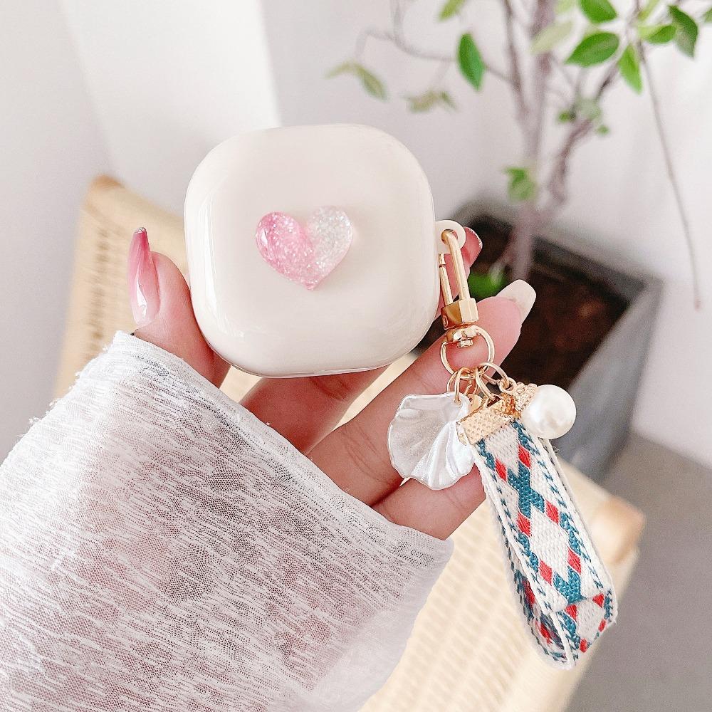 Бежевый чехол для наушников с ремешком в форме сердца для Samsung Galaxy Buds 2 Pro Live, чехол для Galaxy Buds2 Pro, чехол, полная защита с браслетом