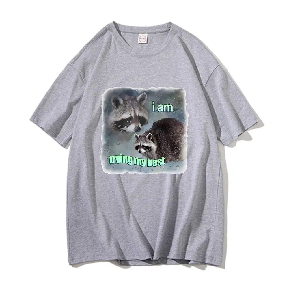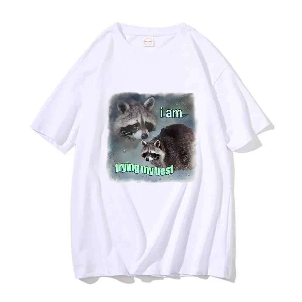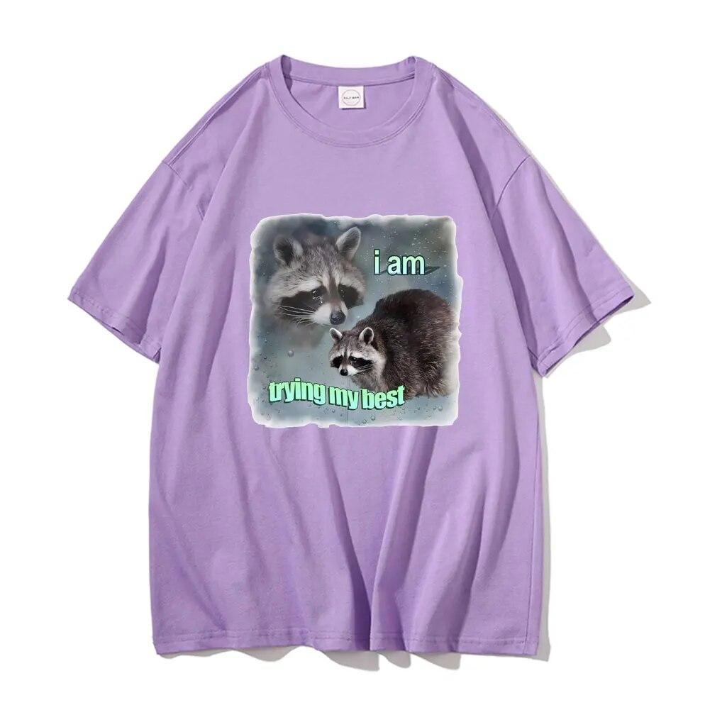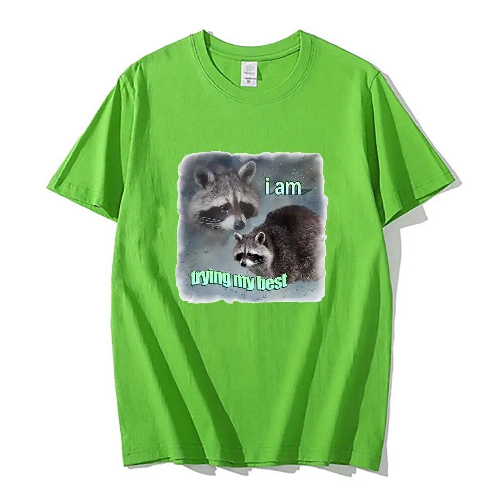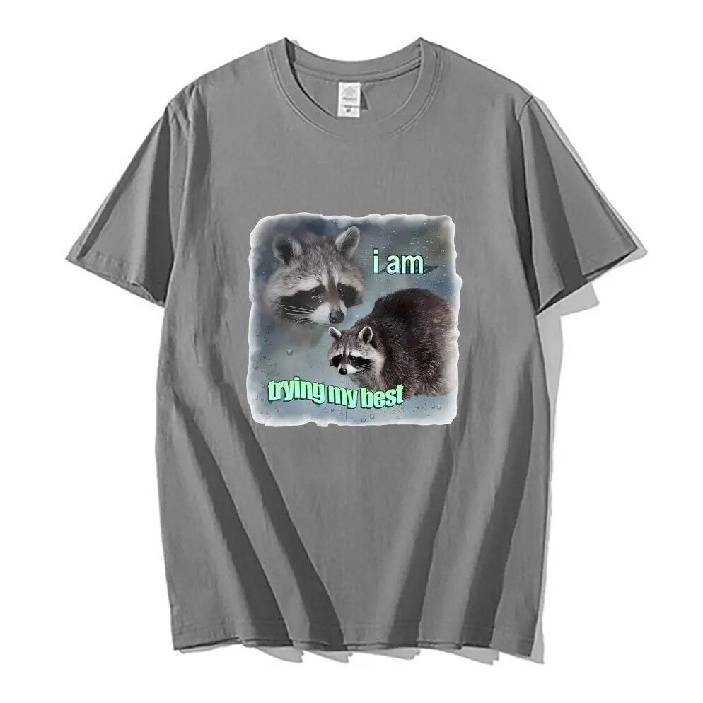 Я стараюсь изо всех сил енот Word Art Meme Графическая футболка Унисекс Женская летняя повседневная футболка большого размера Унисекс Забавная футболка с енотом