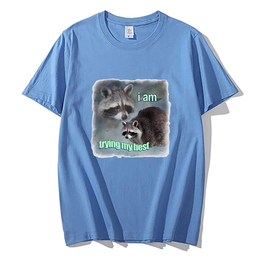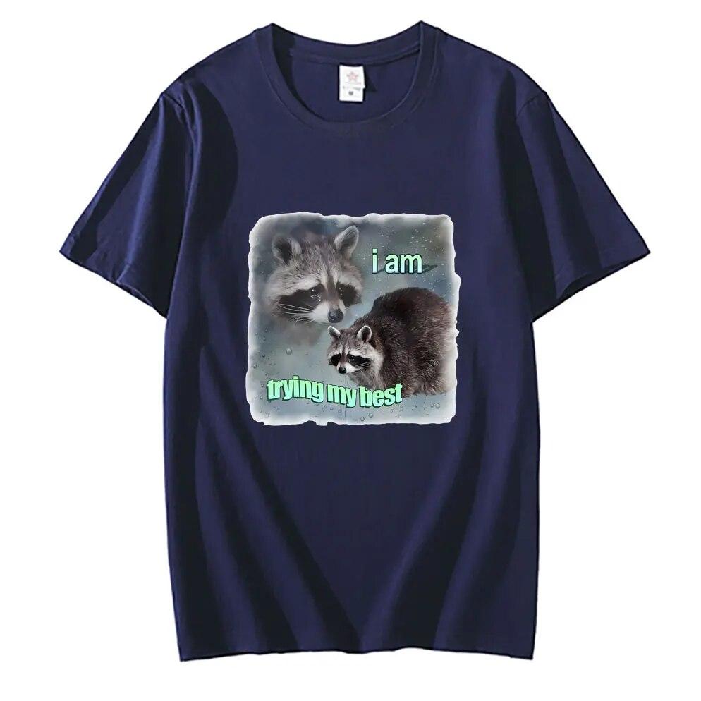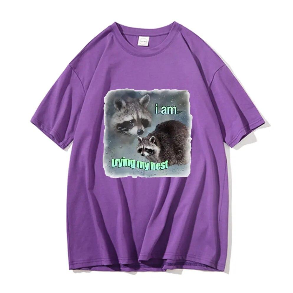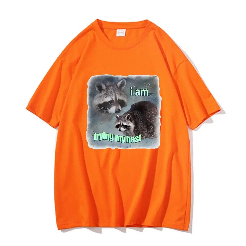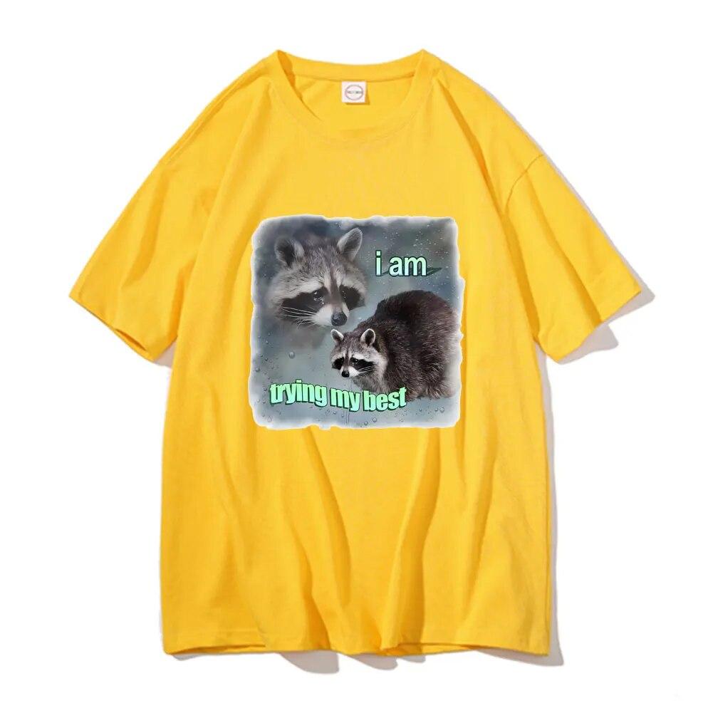 Я стараюсь изо всех сил енот Word Art Meme Графическая футболка Унисекс Женская летняя повседневная футболка большого размера Унисекс Забавная футболка с енотом