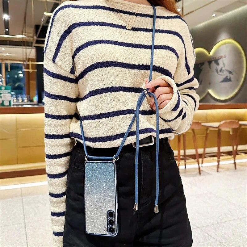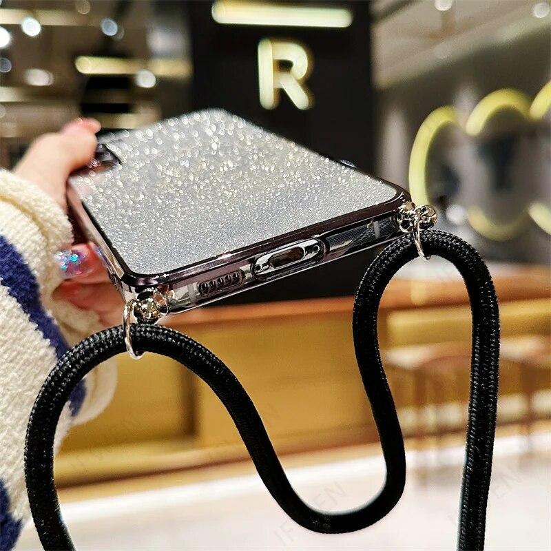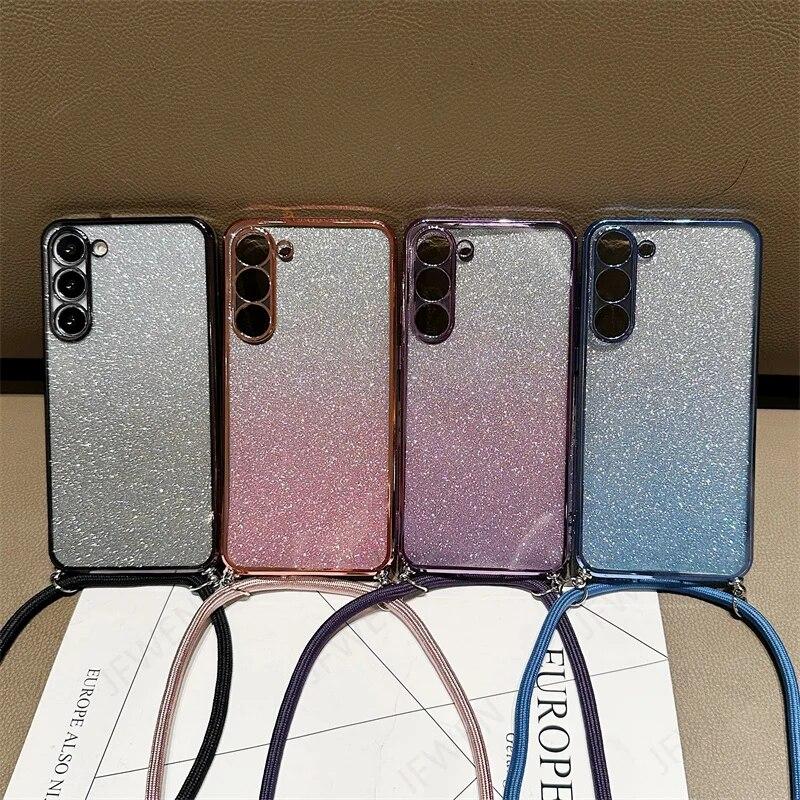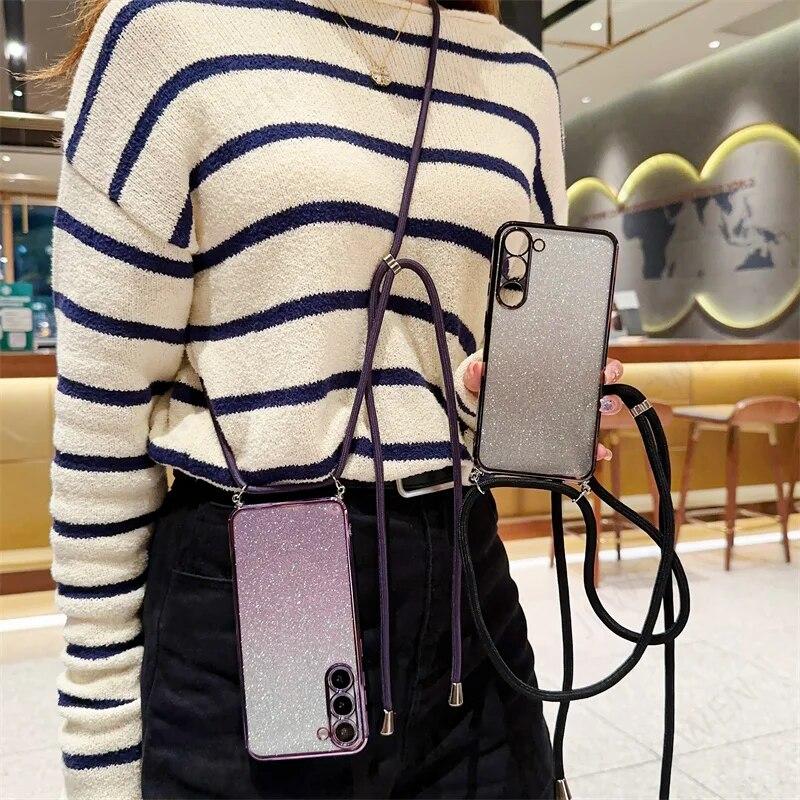 Блестящий силиконовый ремешок через плечо для Samsung S24 S23 S22 Ultra S21 S20 FE A14 A24 A34 A54 A13 A23 A33 A53 A12 A32/Redmi Note 12 11 10