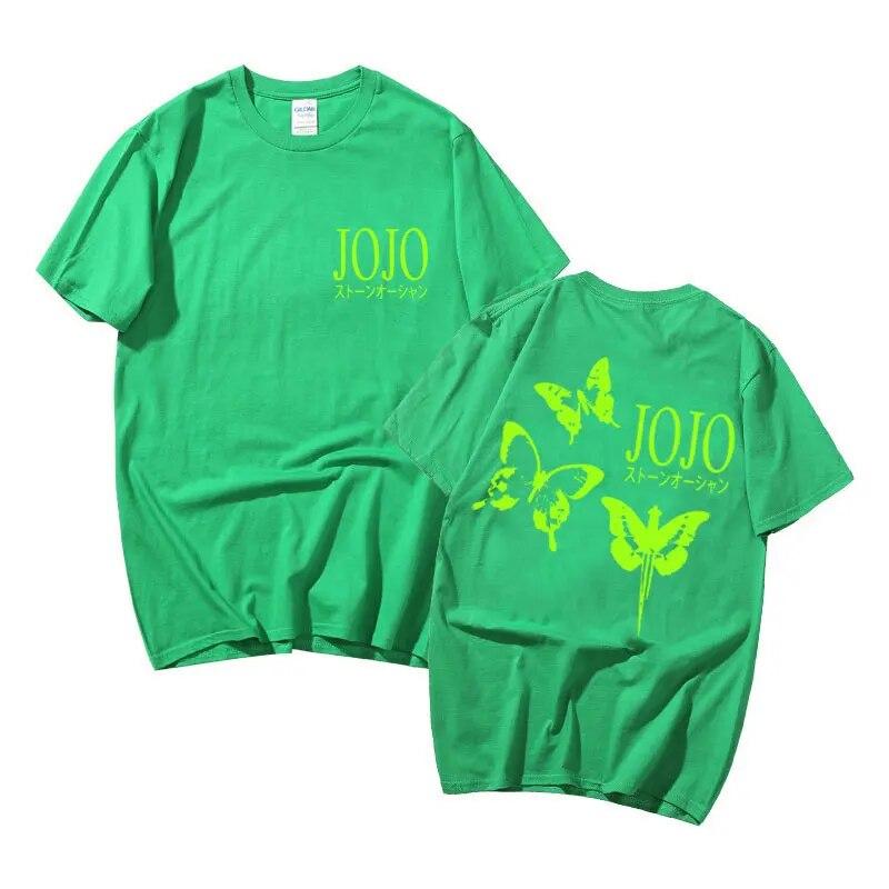 Аниме JoJo Bizarre Adventure Stone Ocean Графическая футболка Унисекс Женская футболка Unisexga Harajuku Футболка Унисекс Зеленая бабочка Футболки с рисунком