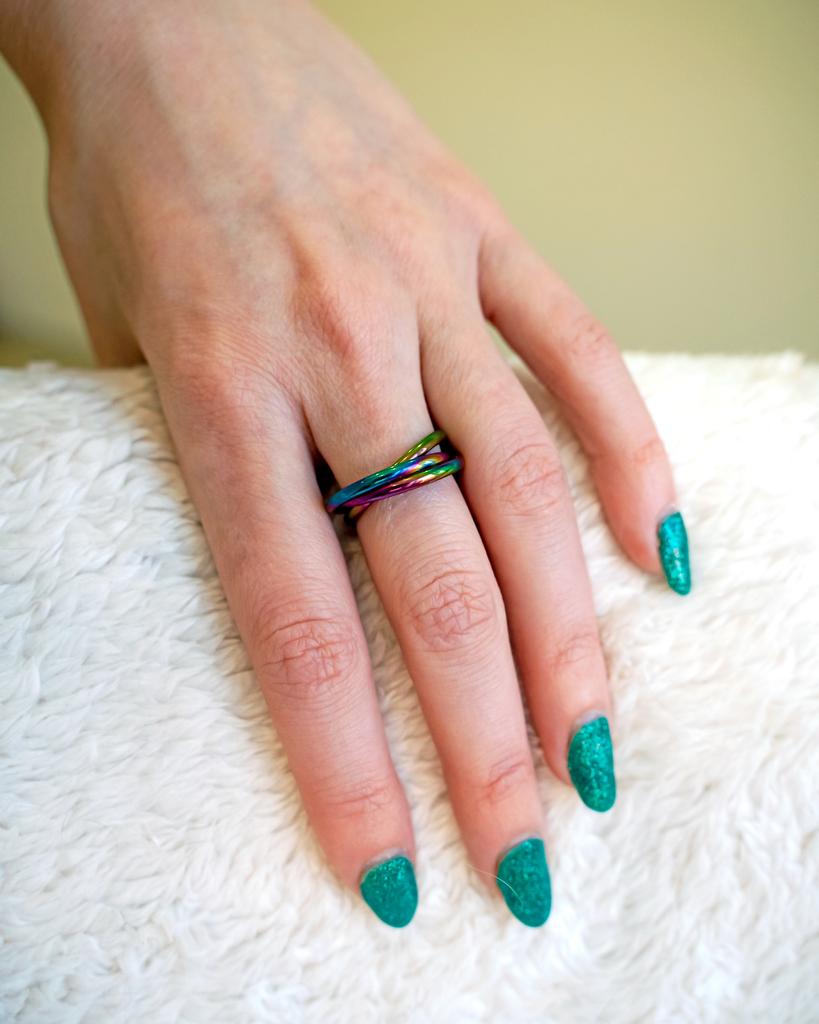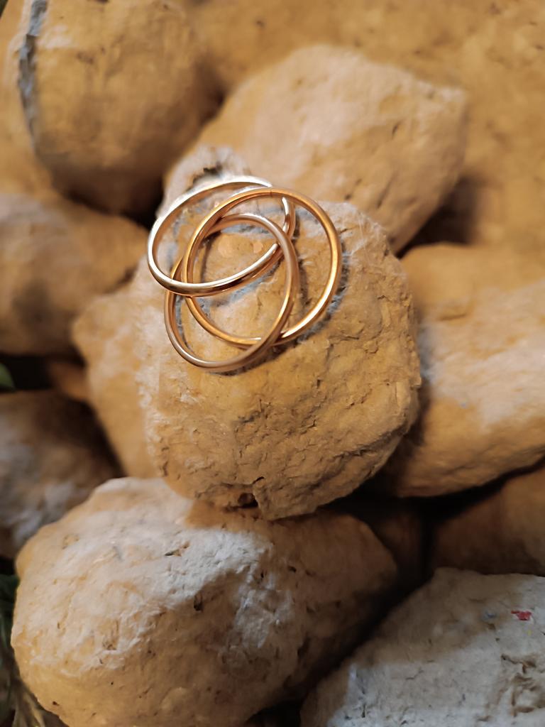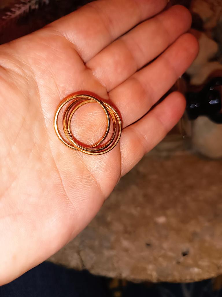 💍 Тройное кольцо Ticify Я взяла в бензиновой расцветке, очень красивая, ещё продаются одноцветные варианты базовых оттенков: под серебро, под желтое и розовое золото, в черном цвете. Кольцо сделано из нержавеющей стали, у меня в размере 6, это американский размер, соответствует диаметру 16,1 см (или 16,5 по другой сетке размеров). Но сами кольца, если по отдельности замерять, бо́льшего размера, просто вместе они примерно на этот размер так как неровно сидят на пальце из-за переплетения. Как сделано это кольцо. Одно кольцо продето через другое, а третье проходит через эти два. Кольца, которыми соединяли имеют швы, они немного заметны. Как по мне, кольцо неудобное, как-то крутила, вертела, на пальце красиво не садится, и объем из-за переплетения колец мне неудобен на тонких пальцах. Кому-то наверно подарю. Хотя расцветка прям красивая. Но это мой опыт примерки, я уверена что найдет своего довольного покупателя!