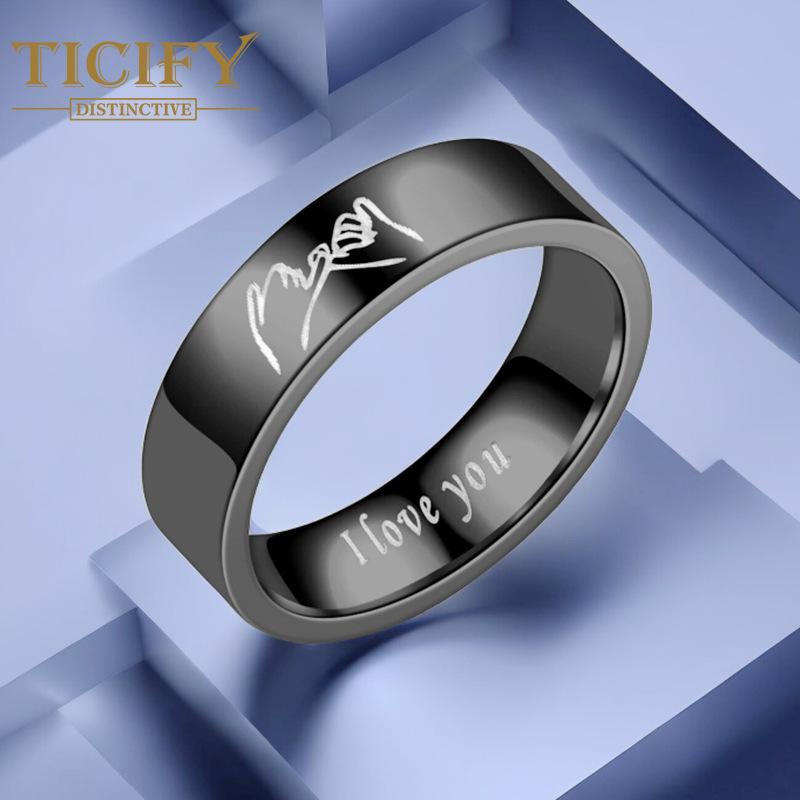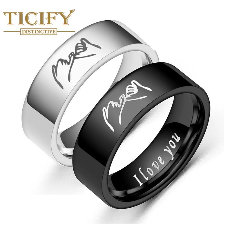 Кольцо для пары из титановой стали. Я люблю тебя. Рука. Рука. Рука. Пара против кольца.