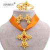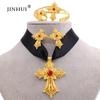 Эфиопский позолоченный крест, ювелирные наборы, кулон, ожерелье, серьги, кольцо, Дубай, подарки для женщин, свадебный комплект из Эритреи
