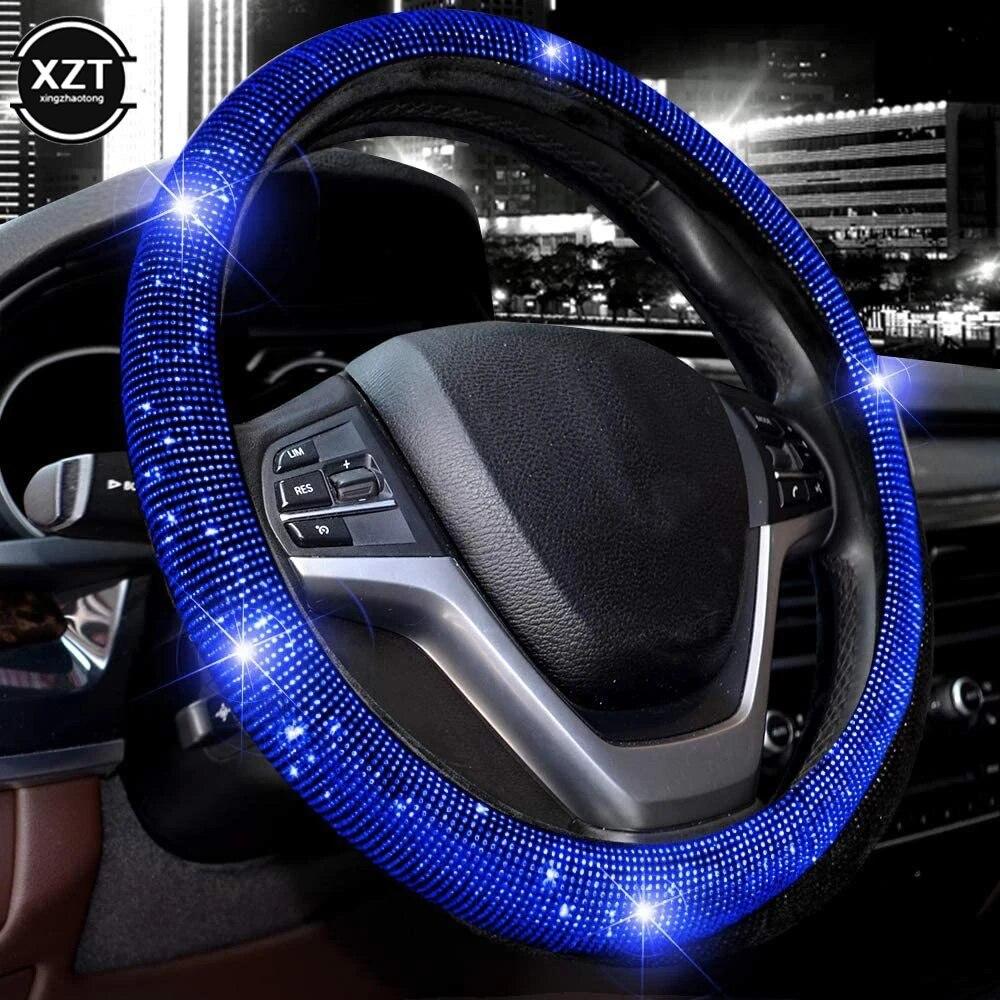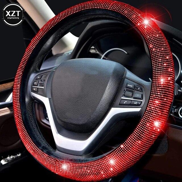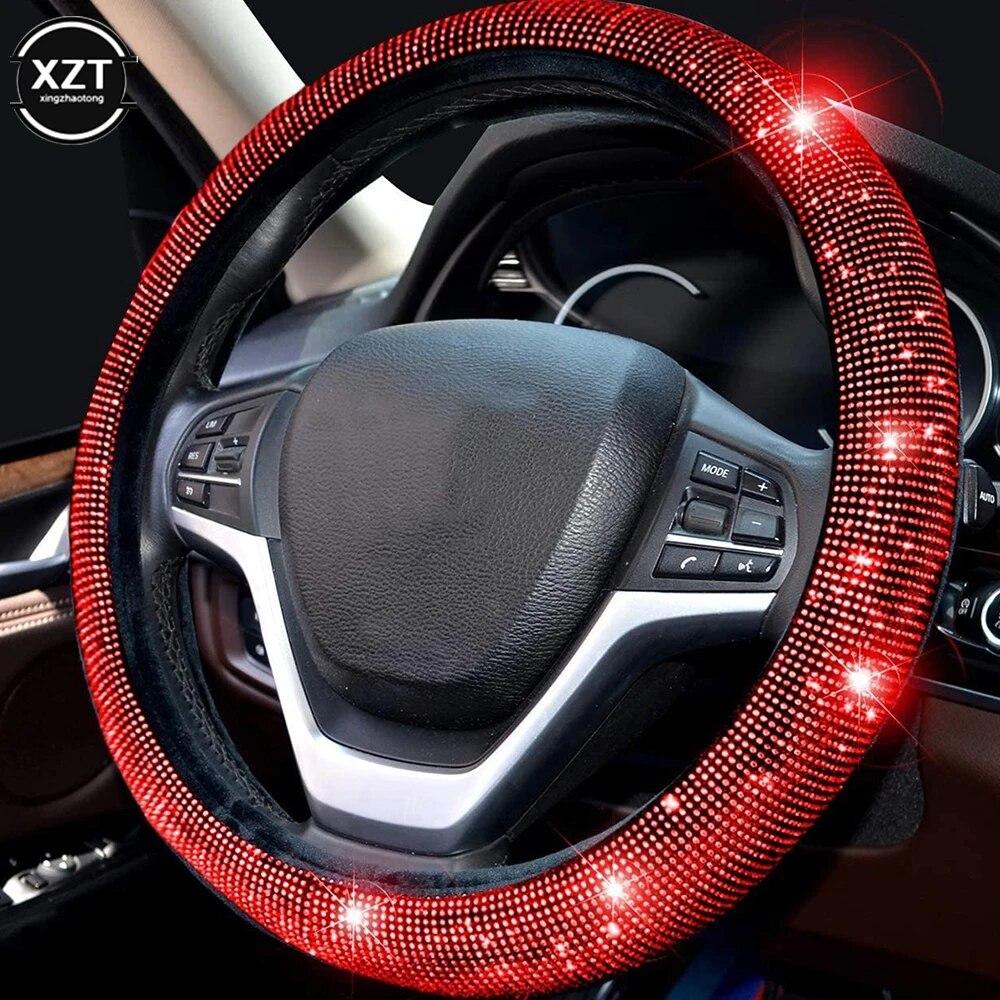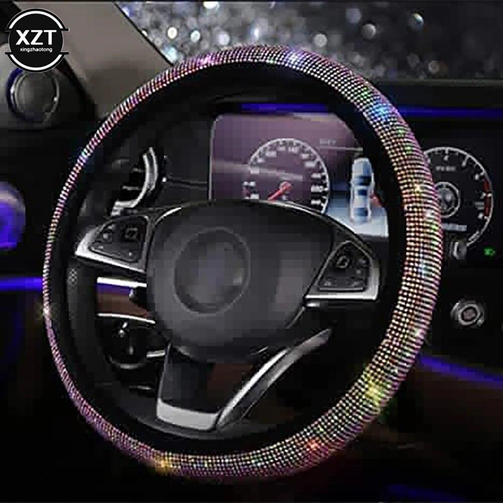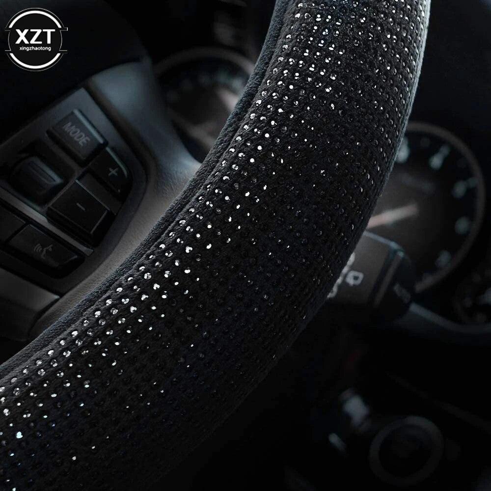 Универсальный чехол на руль со стразами 38 см, сверкающий автомобильный дышащий противоскользящий чехол на руль с кристаллами и бриллиантами