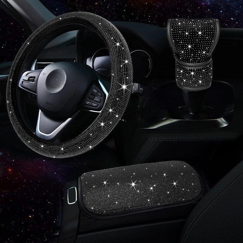 3 шт., женский чехол на руль, чехол для шестерни, подлокотник, блестящий автодекортион, стайлинг, набор автомобильных аксессуаров