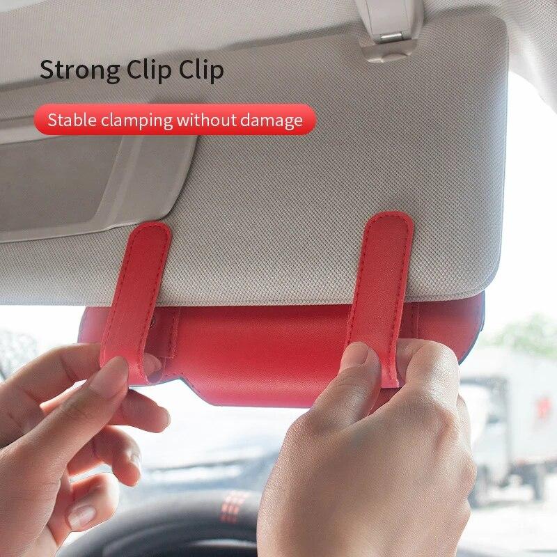 Чехол для автомобильных очков из искусственной кожи, авто солнцезащитный козырек, держатель для очков, зажим для очков, держатель для карт, органайзер для билетов, универсальные автомобильные аксессуары