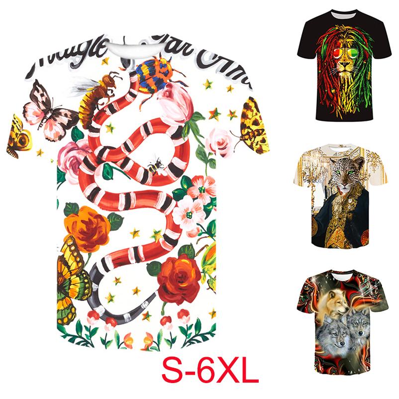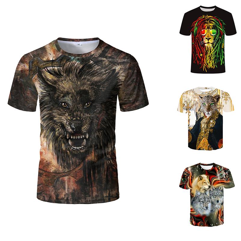 3D цифровая печатная футболка с круглым вырезом и коротким рукавом с животным рисунком для мужчин и женщин, повседневные футболки для пар в стиле панк