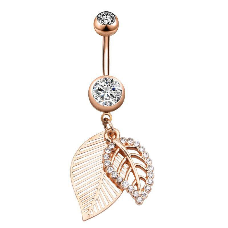 Ювелирные изделия из хирургической стали с висячим листом из циркона, кольцо на животе/пупке, украшения для пирсинга