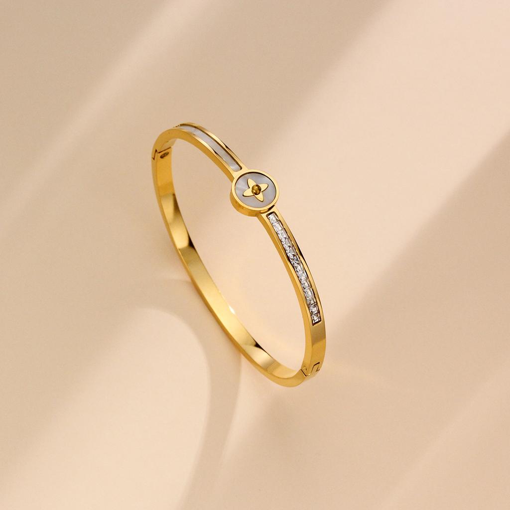 Роскошный и модный четырехлистный клевер Fritillaria, инкрустированный бриллиантами, покрытый титановой сталью 18K, для женского браслета