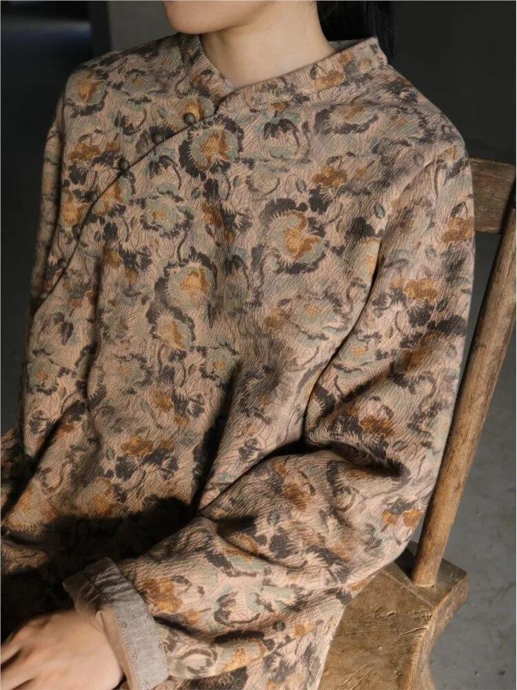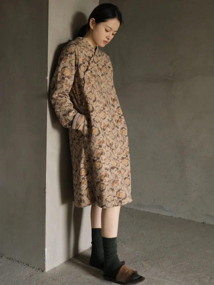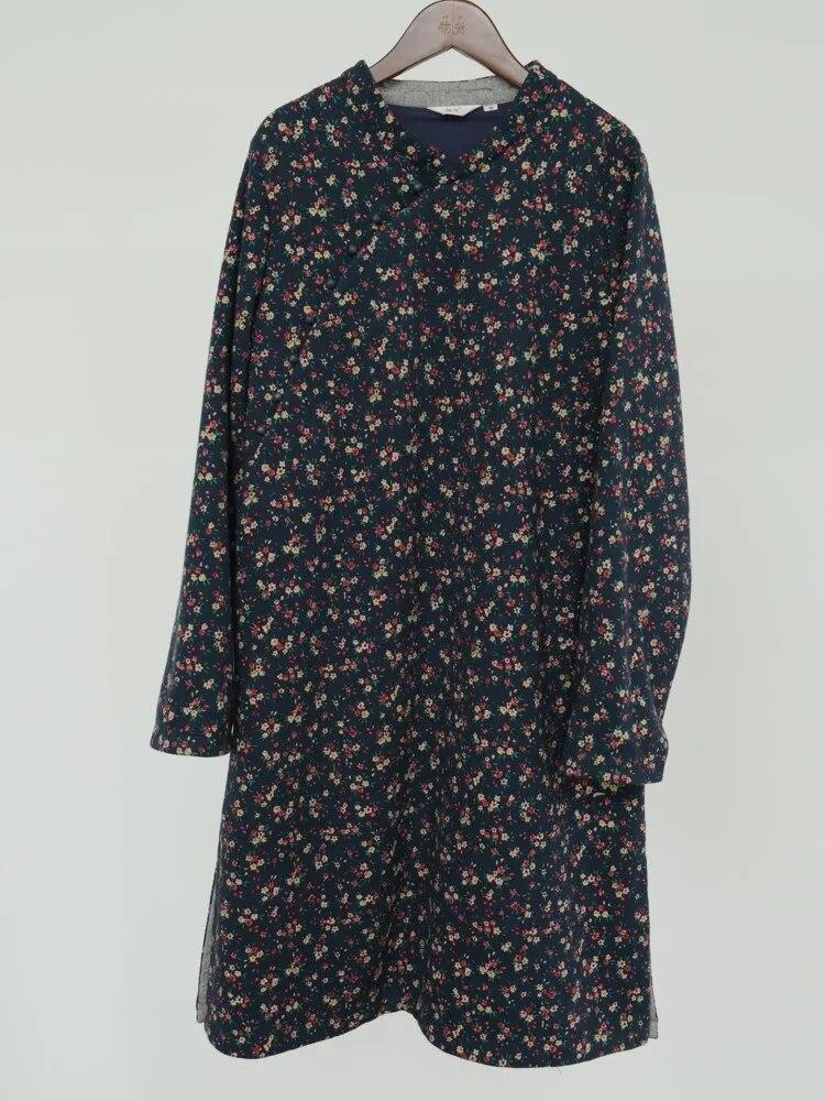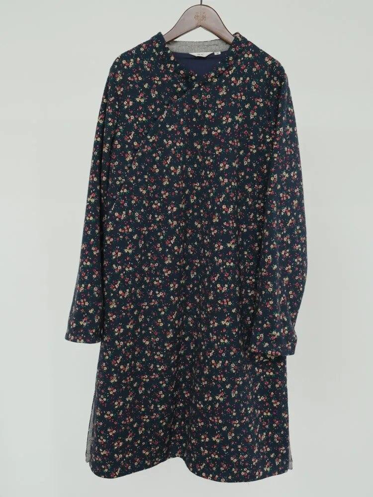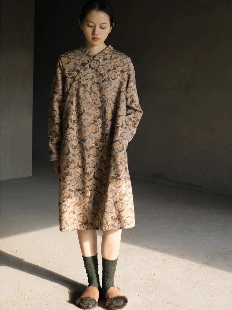 Johnature Женское платье в китайском стиле с длинным рукавом и цветочным принтом, осенние хлопковые женские платья трапециевидной формы