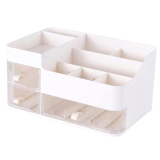 Имеет ящики, предназначенные для хранения масок, косметичек и мелких предметов, а также верхнее отделение для увлажняющих кремов, лосьонов, помады, лака для ногтей, кистей для макияжа, подводки для глаз, палитр теней для век и других предметов первой необходимости.. Этот универсальный органайзер удовлетворит все ваши потребности в хранении вещей и придаст элегантности любой комнате.