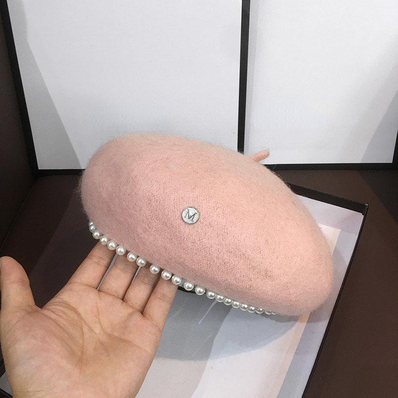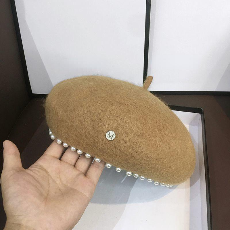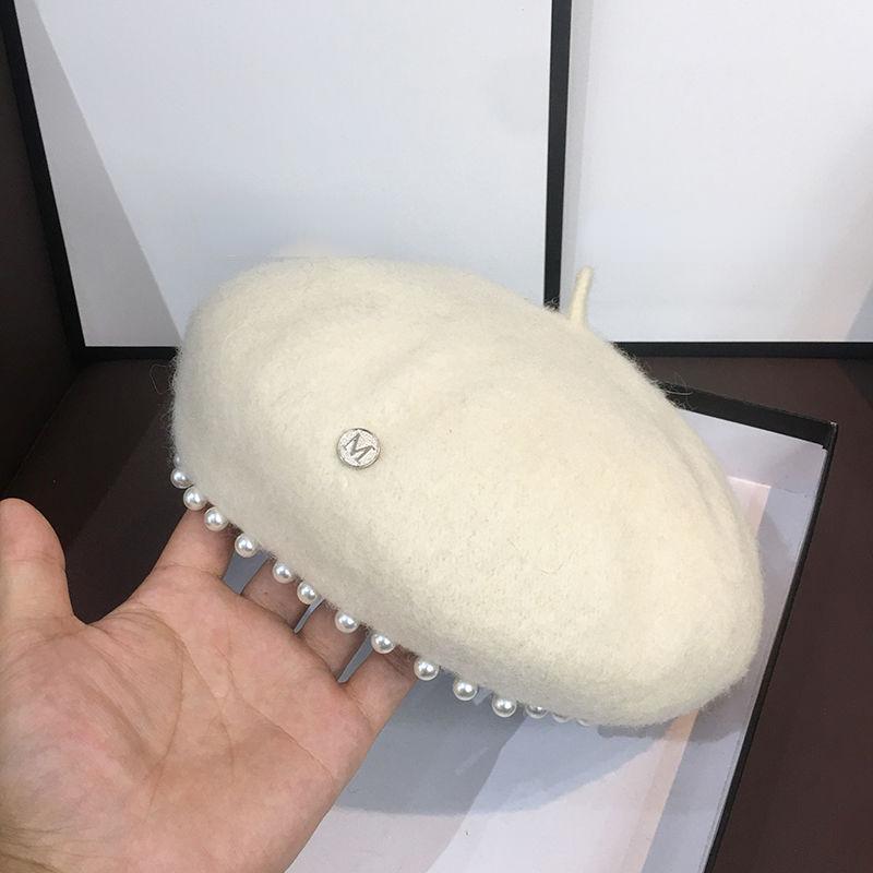 Берет с жемчужной отделкой, женский осенне-зимний тренд, универсальная винтажная шерстяная шляпа художника в британском стиле, элегантная однотонная шляпа