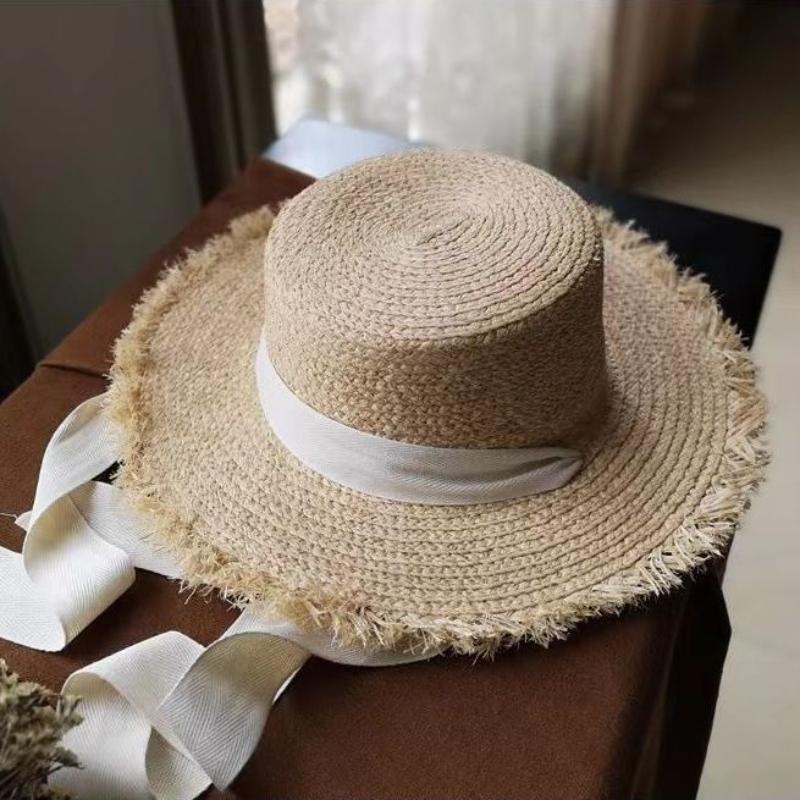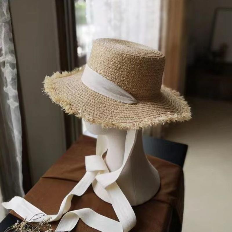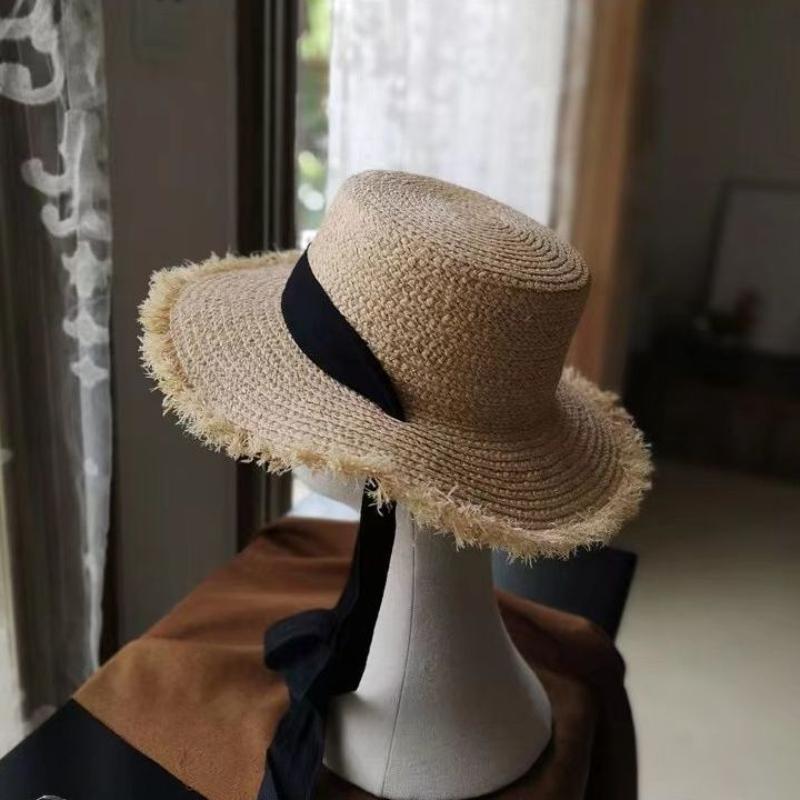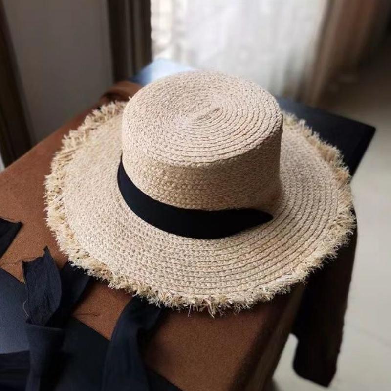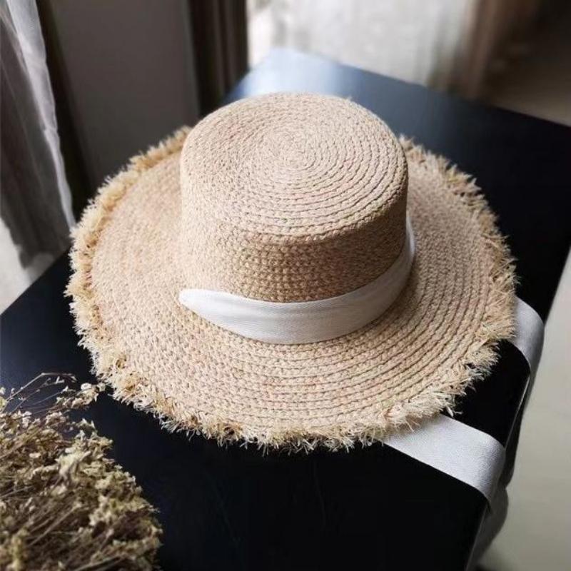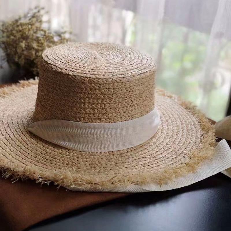 Летняя женская пляжная шляпа из рафии, черно-белая лента, шляпа из рафии с бантом, темпераментная плоская кепка, соломенная шляпа, женская морская шляпа