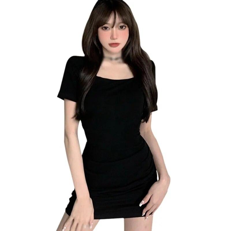 Женские узкие платья с квадратным воротником и открытой спиной с короткими рукавами