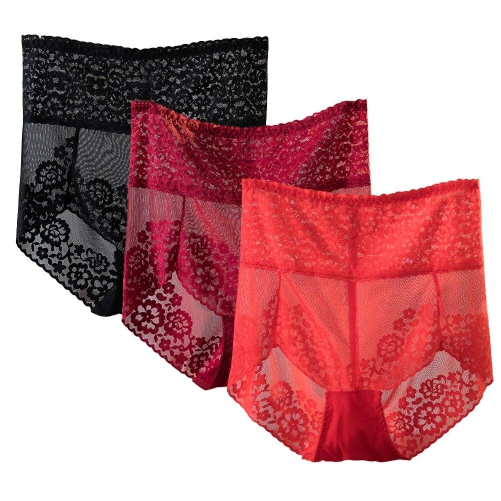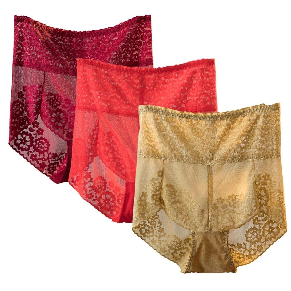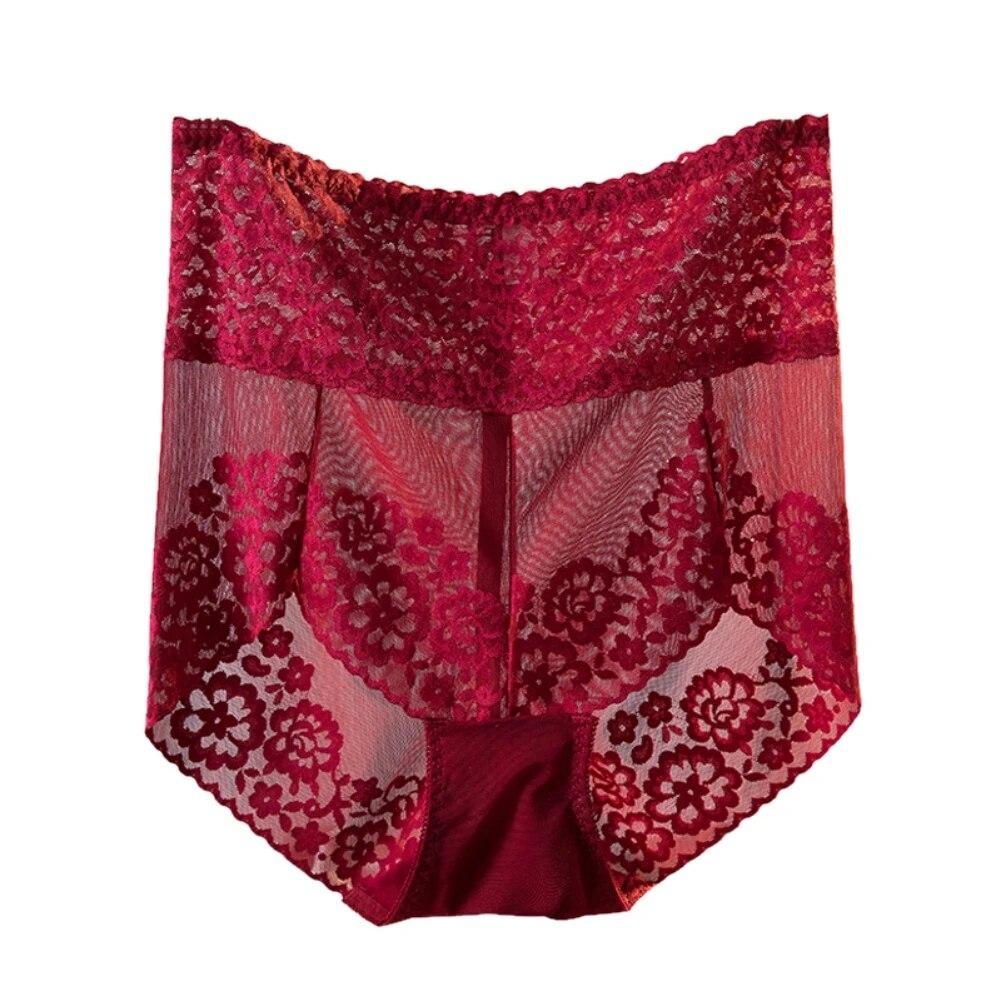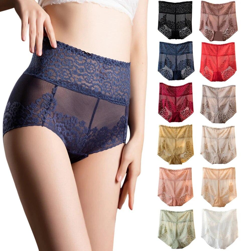 Женское кружевное нижнее белье, хлопковые трусики с промежностью, кружевные трусы с высокой талией и цветочным принтом, тюлевые трусы, женские бесшовные трусы с полным покрытием