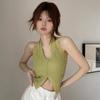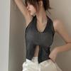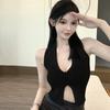 Женская трикотажная майка с открытой спиной, топ с подвесным воротником, бретелька для пупка