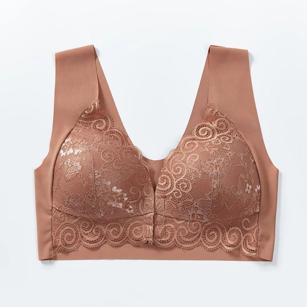 Женский кружевной бюстгальтер без косточек с подкладкой, беспроводной бюстгальтер, кружевной бюстгальтер с цветочным принтом, застежка спереди, гладкий демисезонный бюстгальтер, кружевные бюстгальтеры, тонкий мягкий бюстгальтер пуш-ап — купить товар онлайн с бесплатной доставкой до всему миру!