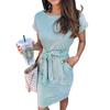 Женское летнее полосатое платье-футболка с короткими рукавами, повседневное платье с завязкой на талии и карманами — купить товар онлайн с бесплатной доставкой до всему миру!