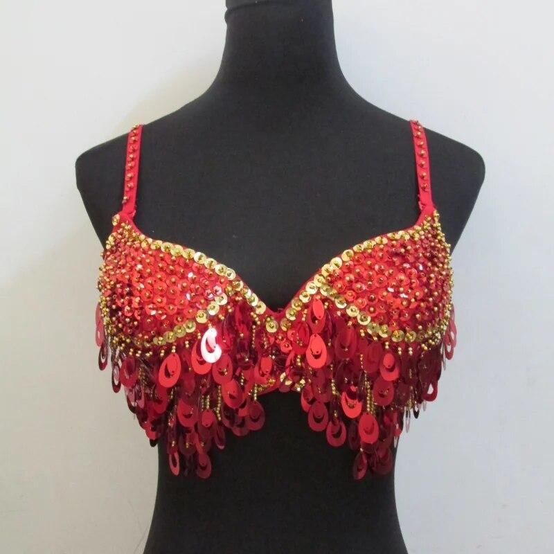 Бюстгальтер для танцев с мерцающими кисточками и блестками, топ живота, бахрома из бисера, танцевальный костюм, бюстгальтер без косточек для танца живота из бисера