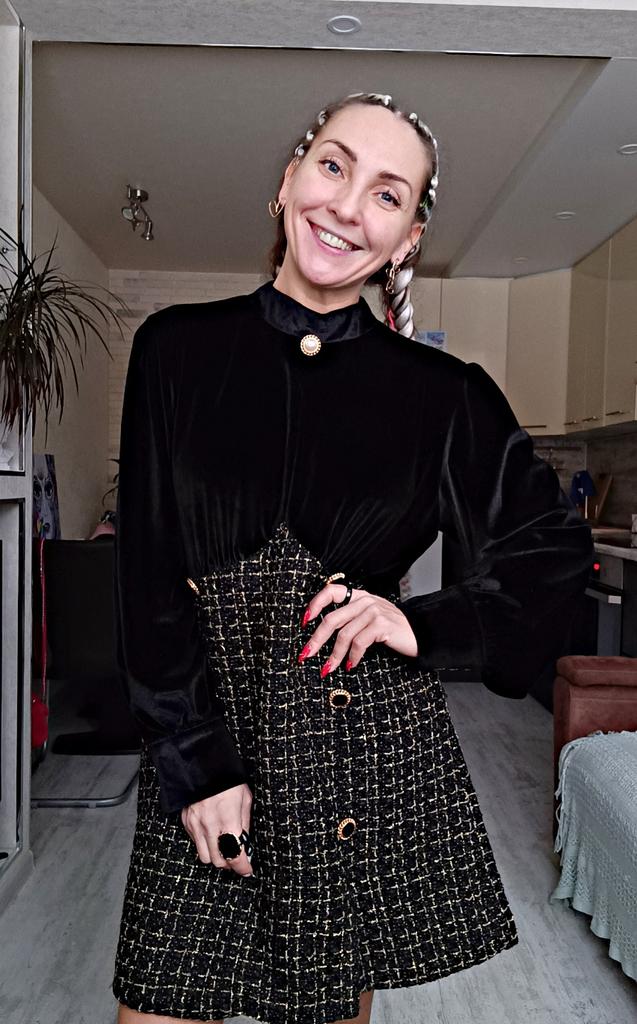 Элегантное платье бархат и ткань под твид ♣️🟫 Всем солнечный приветик 👋😉 Добротное качество и смотрится платье дорого 💣 Я ошиблась с размером и очень сильно 😁 Размерный ряд великолепный 🔥 Я заказала размер XXL. На мне село ооочень свободно 😁 Смело могла брать свой размер S. Этот размер сядет и на 48 и, возможно, на 50 размер. По фасону платье не должно сидеть по фигуре, свобода должна быть. Мои параметры: 🎗рост 160см 🎗вес 57кг 🎗длина плеч 40см 🎗объём груди 94см (75D) 🎗объём талии 65см 🎗объём бёдер 94см. Качество: ♣️ верхняя часть платья синтетический бархат, приятный к телу, стрейчевый 🟫 нижняя часть типо твида, не тянется и в ней есть нитки люрекса ♣️ подклад синтетический и он есть как спереди, так и сзади, кроме рукавов 🟫 не светится ♣️ платье на холодный сезон осень/весна/зима 🟫 воротник стойка ♣️ в верхней части платья пуговицы типо жемчужина и вокруг золотая окантовка, а снизу чёрная сердцевина и тоже золотая окантовка (пластик) 🟫 рукава широкие к манжете идут на заужение ♣️ на манжетах по 4 пуговицы и они рабочие 🟫 по одной ноге идёт небольшой деликатный разрез ♣️ сзади длинная потайная молния 🟫 швы ровные ♣️ качество отличное. Точные замеры платья в размере XXL: 📏 ОГ - 108 - 120см 📏 ОТ - 96см 📏 ОБ - 108см 📏 длина бархатной части платья - 36см 📏 вся длина платья от плеча - 87см 📏 плечи (дальше рукава-фанарики)- 43см 📏 длина рукава от воротника - 70см 📏 длина рукава от плечевого шва - 59см 📏 объём рукава у плечевого шва (пройма) - 49см 📏 объём манжеты - 23см. Я платьем довольна очень-очень и рекомендую его всеми ручками, но важно не ошибиться с размером 💞🤗💞 Спасибо, продавцу и Джуму 😘😘😘 Чмок-чмок-чмок, всех кто со мной на Джуме 59 тысяч раз 😘😘😘😘😘 Желаю удачных покупок 🛍😊 терпения 🤗 и весны в душе 🌈☀️🌱🦋🌼💕🐞🌳🕊 До скорого 🙌😊 Песня во втором видео: Chinchilla "Trigger" 🎶💃🎶