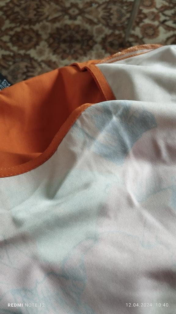 Ткань тонкая, костюмная, не просвечивает. Брюки большие, блузка как раз, но очень короткая на рост 164см, едва прикрывает пупок. На ОГ 124см едва-едва прошло, но сидит как-то неловко. Ниже на брюках ложный гульфик, акцентирует внимание на паховую зону. На ОБ 122см брюки широкие см на 5. Цвет чисто поросячий, не понравился, но поздно сокрушаться. Буду переделывать, подгонять под себя