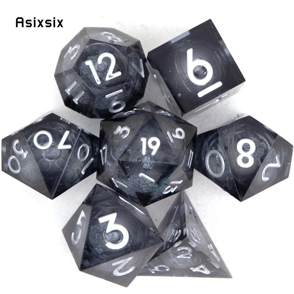 7 шт., черная смола, струящийся песок, белый номер, острые края, многогранные кости, подходящие для ролевой настольной игры