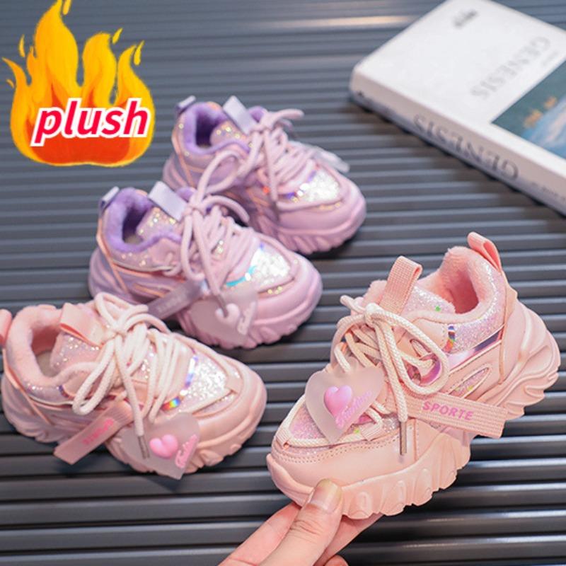 Кроссовки с блестками для девочек, детская модная теплая спортивная обувь для бега